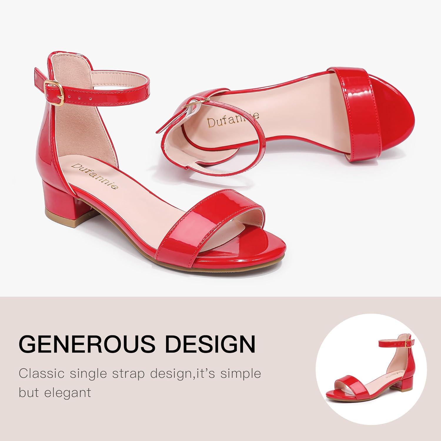 Be the first to review “Dufannie Girls Sandals Low Heels Dress Pump Ankle Strap Open Toe Flower Girl Wedding Party for Toddler Little Big Kid(Patent Red Single)”